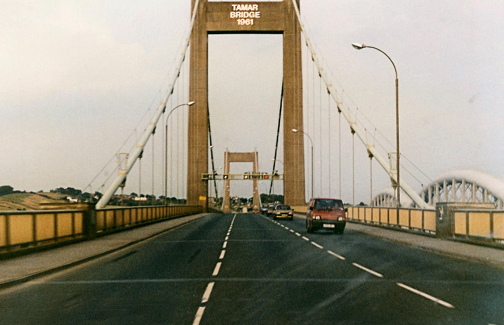 Photograph of Tamar Bridge adapted from an original by Stuart Logan and used under this Creative Commons licence.