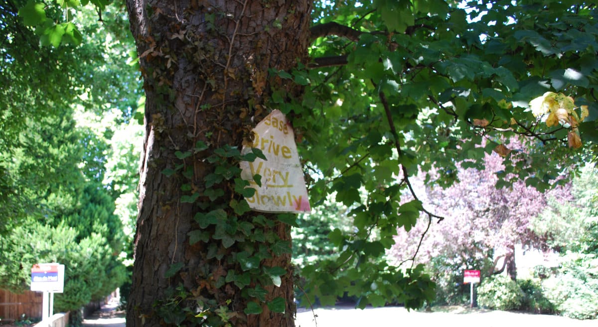 Please drive VERY slowly: good advice on home-made road signs. Click to enlarge