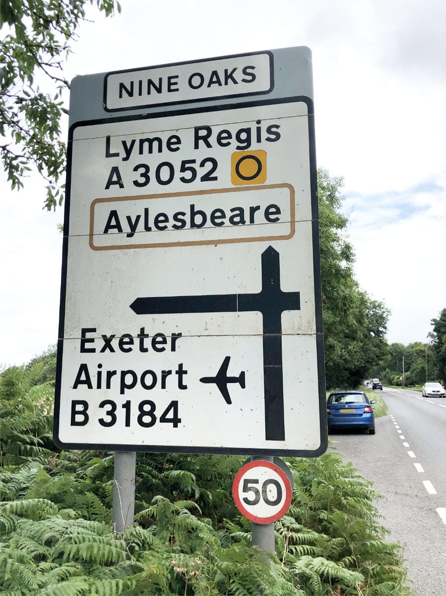 If you find yourself in Devon, though, you'll soon stumble on signposts that don't conform to the system - they have unusual blue or brown arrows on them, and coloured borders, or sometimes no border at all.