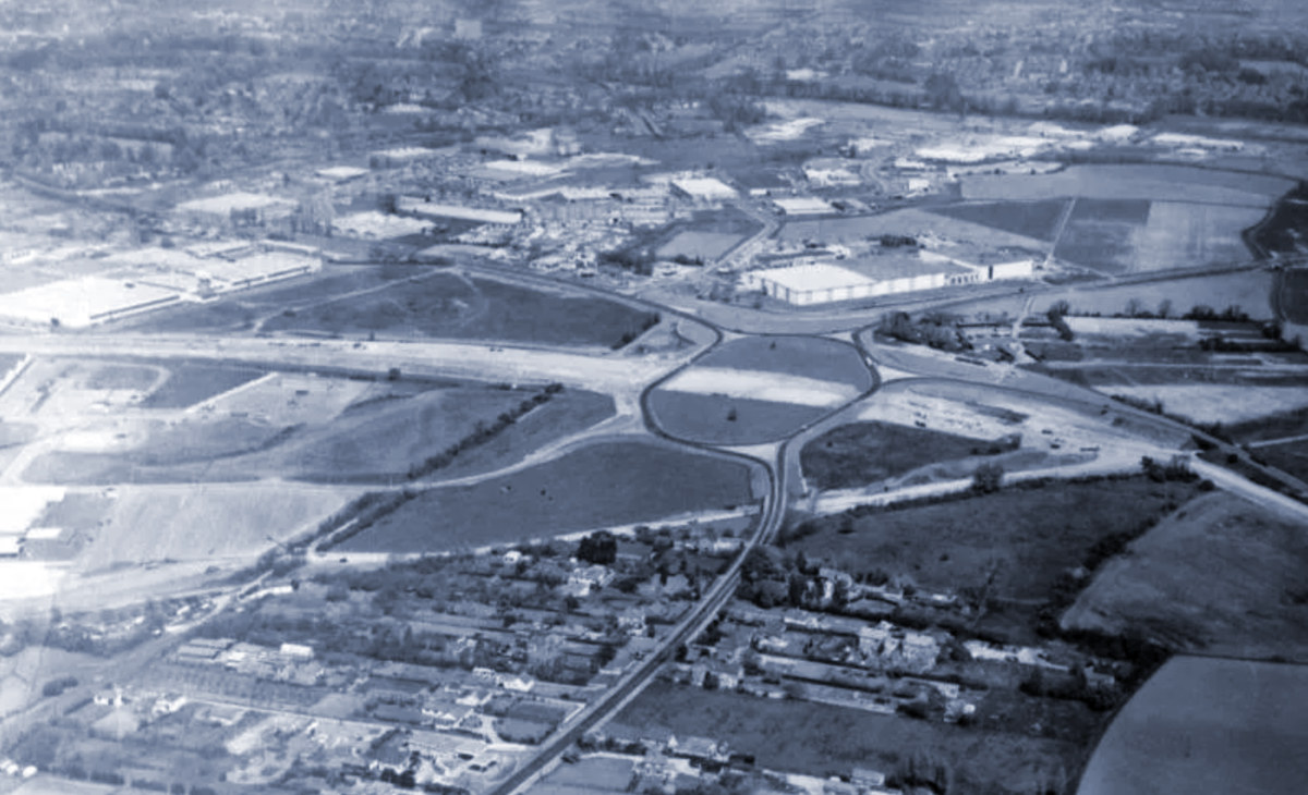 Hardwick Roundabout as built in 1975, just six roads and a big roundabout