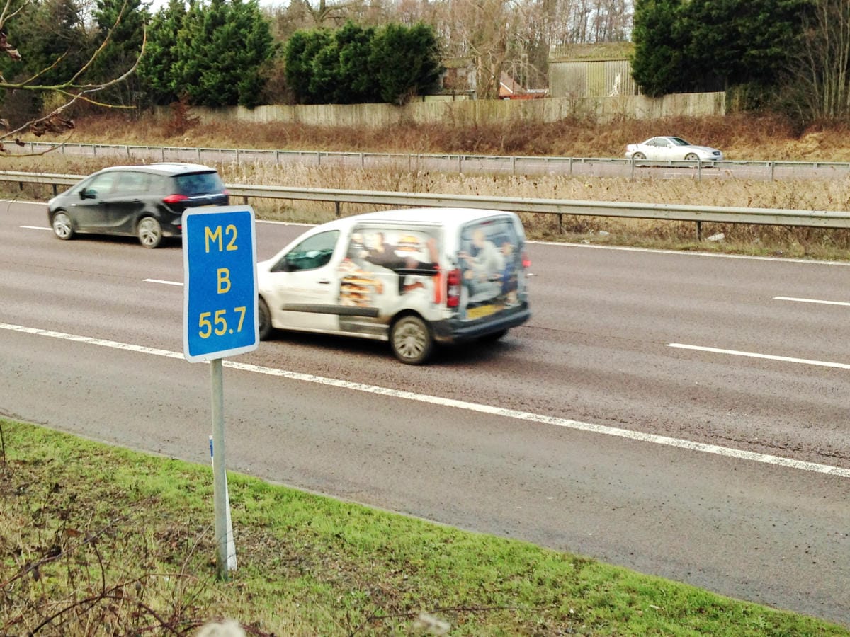A Driver Location Sign at markerpost 55.7 on the M2's B carriageway. Click to enlarge