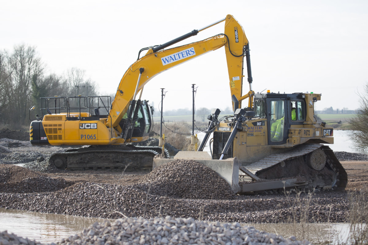 - Photograph of construction work on the A14 is taken from an original by Highways England.