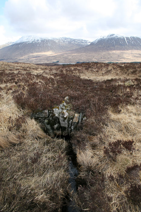 From Bridge of Orchy, General Caulfeild's road climbs steeply, using what is now the West Highland Way (WHW) to Inveroran and then joins the public road to cross the River Abhainn Shira at the Victoria Bridge. From here, the General opted for a high level route, to try and avoid the treacherous bogs of the lower moor, and also reduce the expense of building too many large bridges: many of the streams were crossed with cobbled fords.
