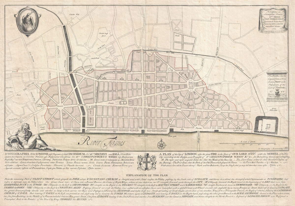 - Christopher Wren's plan for London: Wren's Plans after the Fire (British Library); A Plan for Rebuilding the City of London (British Library).