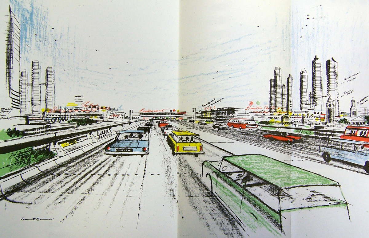 - Artist's impression of motorway through Brixton from "Brixton Town Centre", London Borough of Lambeth (LBL/BDD/1/16/1).