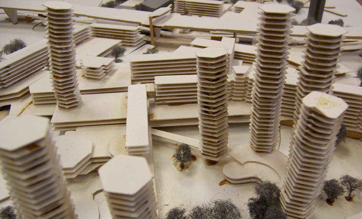 Brixton was, in fact, the next town centre redevelopment plan that the South Cross Route used to make its passage through South London easier. As part of the grand proposals, a restaurant was planned, suspended above the motorway, and the Victorian buildings of Brixton itself would be swept away, to be replaced with fourteen spindly tower blocks and a panorama of new concrete buildings. One of the original architect's models of this monstrous scheme survives, complete with endless towers and the suspended restaurant.