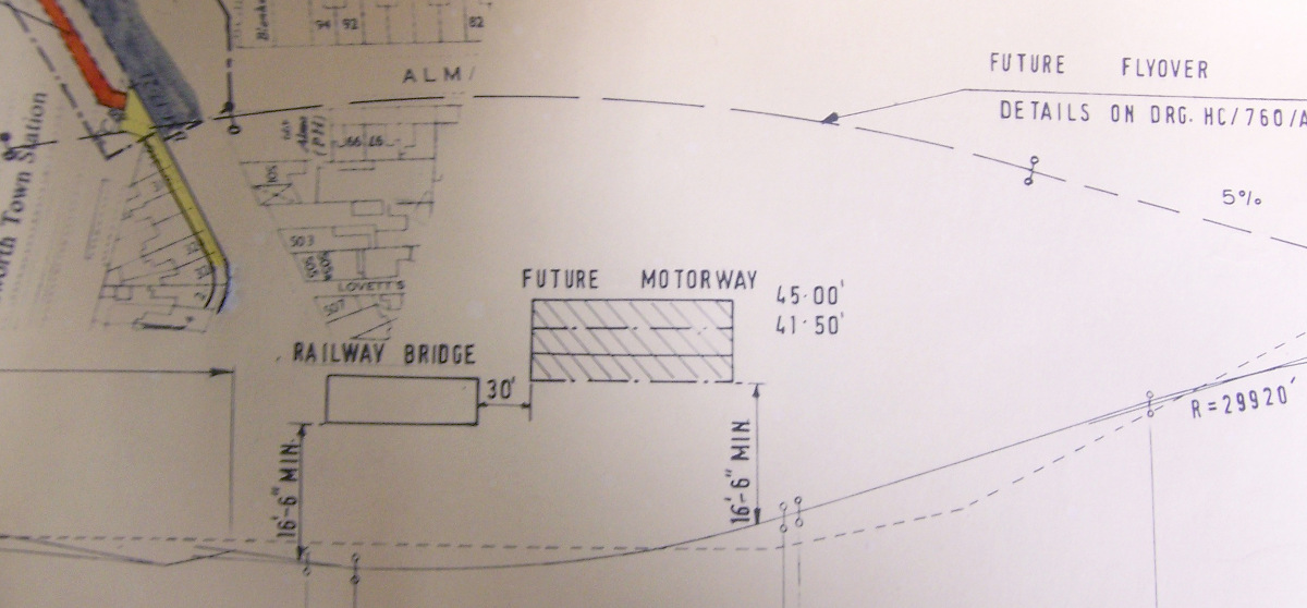 It's a very rare, fleeting glimpse of a little motorway plan that is not just difficult to spot now, but was almost entirely overshadowed by bigger and more destructive plans even in the 1960s.
