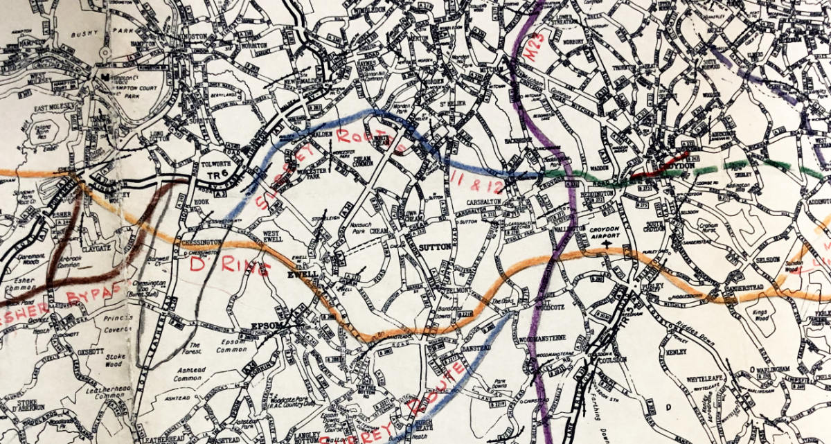 Sweeping through the suburbs from the M20 in the east to the M3 in the west, skimming the centre of Croydon and squeezing past Epsom races: the southern side of Ringway 3 would have been enormously destructive and intrusive, and yet it was never the subject of much protest.