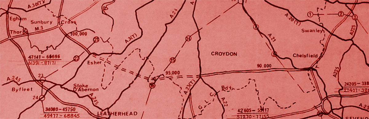 Their secrecy became a whole new problem. It was common knowledge that the Ministry had engineers plotting out motorway lines around Croydon and Sutton: the launch of the feasibility study was marked with plenty of news coverage, and the much-publicised Greater London Development Plan, shortly to go to public inquiry, made plain that the GLC required a major motorway ring road somewhere in the area. The question was, where?