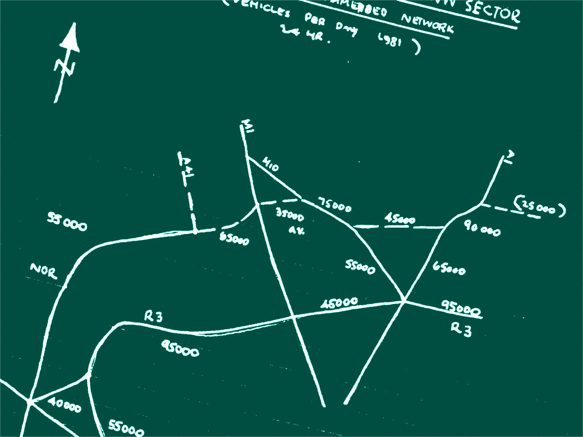 "R3 will be continued as the only motorway orbital to A1 at South Mimms, thence to M11. This will be in preference to NOR which is not shown to have high enough potential… The NOR east of Hatfield may not materialise till the 1980s, but because there is the possibility of bringing it forward if needed as a relief to the A1-M11 section of R3, we are able to restrict the A1-M11 section to dual three, which is what [we] have announced for the A1-A10 part."