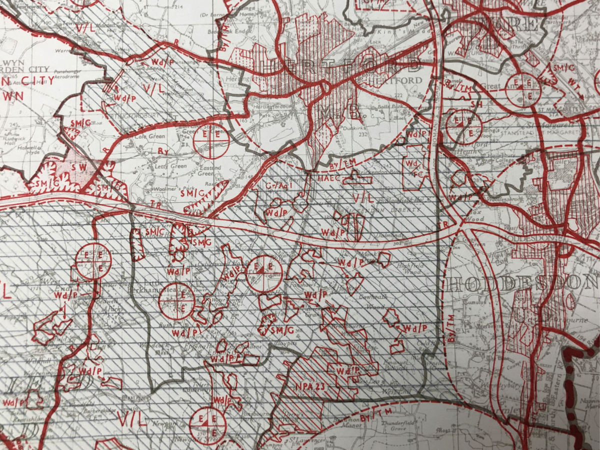 - Plan showing NOR south of Hertford is from the Hertfordshire County Development Plan (1958), now out of copyright.