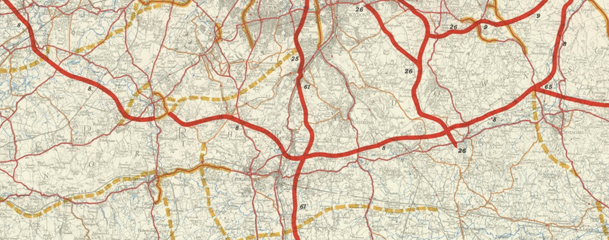 Based on what he saw through his aviator goggles, Bressey plotted a line for the South Orbital that skirted the northern edges of Sevenoaks and Westerham, climbed the escarpment to Reigate, borrowed a length of the then-new Leatherhead Bypass and swept around Weybridge.
