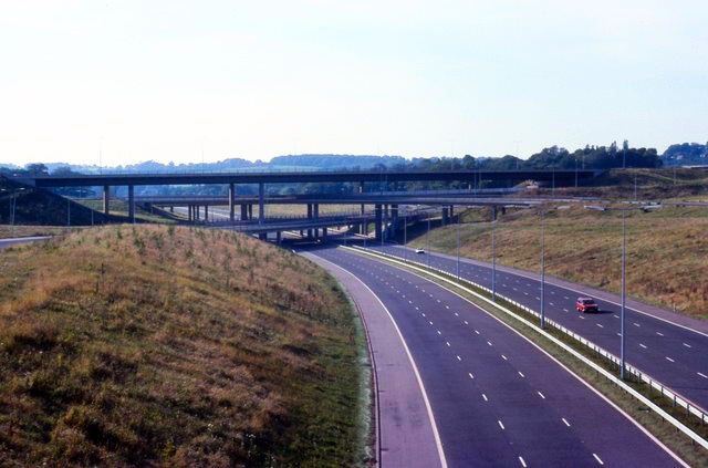 - Photograph of M25 near Godstone taken from an original by Robin Webster and used under this Creative Commons licence.