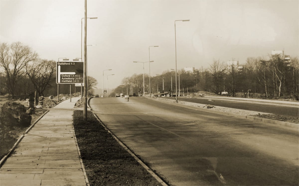 By the start of the Greater London Development Plan Inquiry in 1970, the A3 had improvement works in hand or already complete for almost all its length in London. Just three gaps remained in the near-motorway route from rural Surrey to Ringway 2.