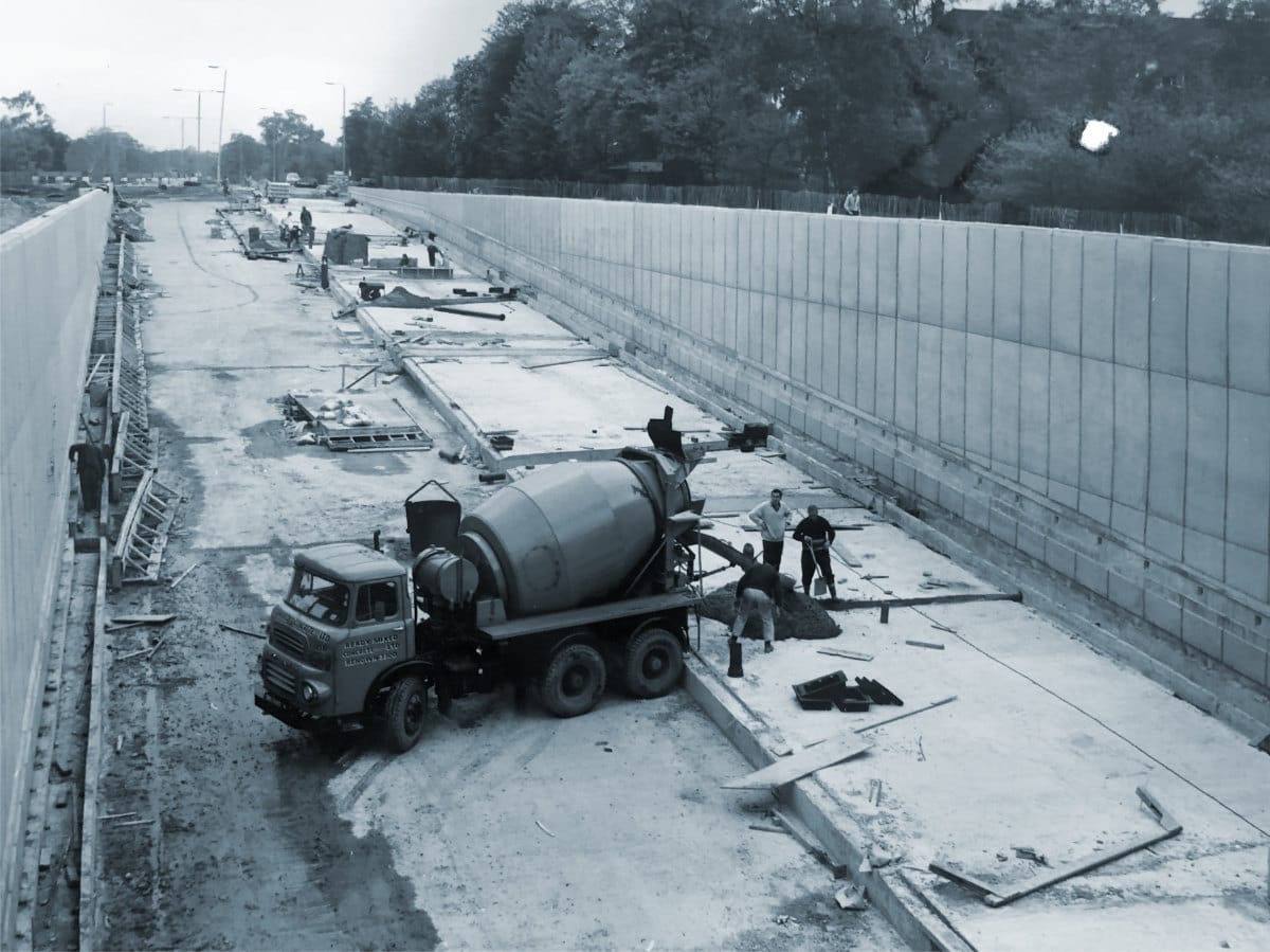 - Photographs of concrete pouring in Tibbet's Corner Underpass, the Underpass shortly after opening and the traffic lights at Roehampton Lane are extracted from GLC/TD/C/21/003.