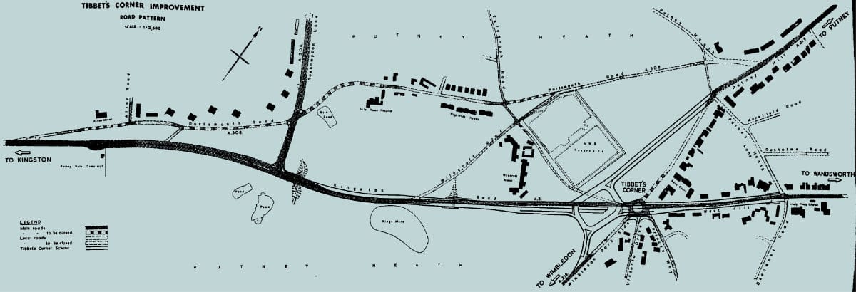- Artist's impression of Tibbet's Corner and plan of Putney Heath scheme are extracted from GLC/TD/C/36/013.