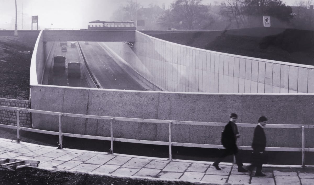 The scheme sounds monstrous, but it was built, and it gave us the Kingston Bypass we know today. The Hook Underpass came first, opening in 1960, and was quite a novelty: a model of it was donated to the Science Museum. But it only carried two lanes each way, and more were clearly needed. All the subsequent work to widen the Kingston Bypass, which continued through to the late 1970s, created three continuous lanes each way.