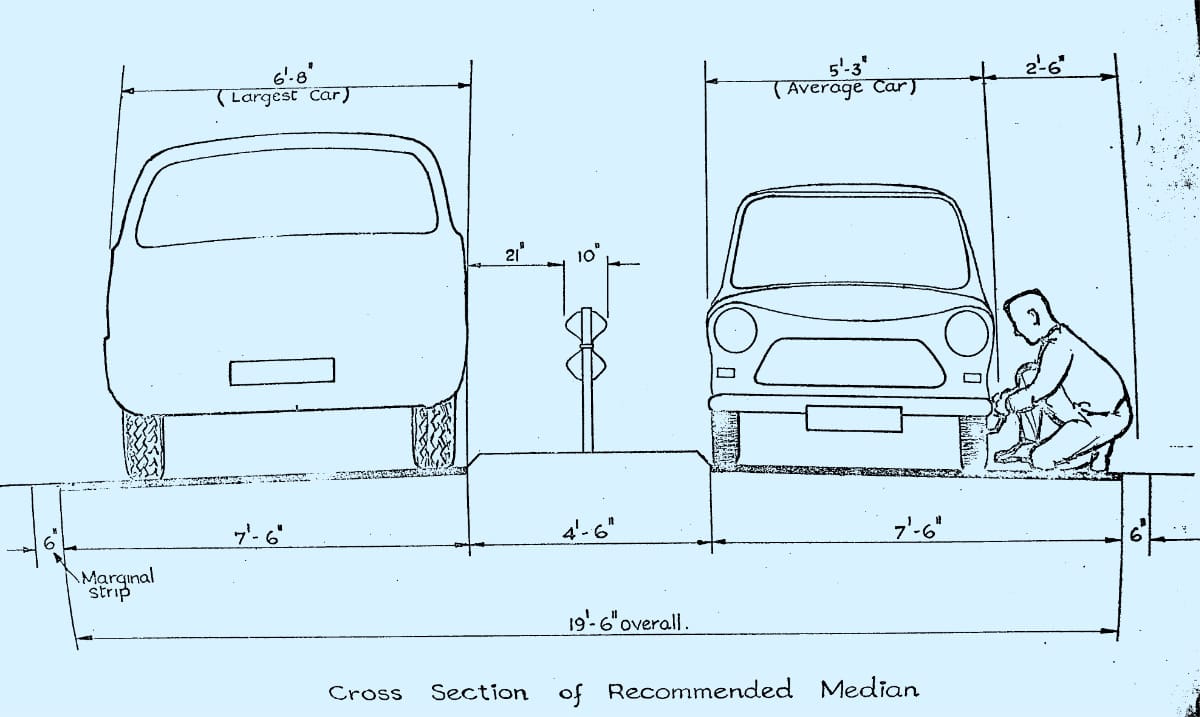 The idea of a motorway with four lanes, not three, was so troubling that Travers Morgan were brought back to do another study. In August 1967 they reported that a motorway could be built with four lanes each way without causing the downfall of civilisation, but to guard against the additional risks, recommended hard shoulders on both sides of both carriageways - four in total.
