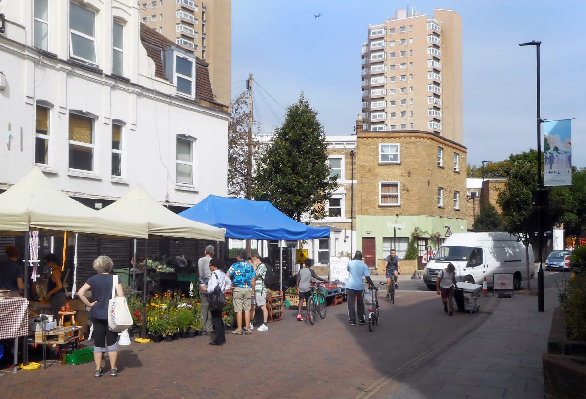The motorway would then run on a viaduct through Herne Hill, destroying the southern end of Railton Road, much of Herne Hill's shopping district and the eastern corner of Brockwell Park. It would run above the A215 Norwood Road and the adjacent shops, following the curve of the railway tracks around the edge of the park. Further along, the handsome Victorian terraces on the east side of Norwood Road would be demolished to make way for the viaduct.