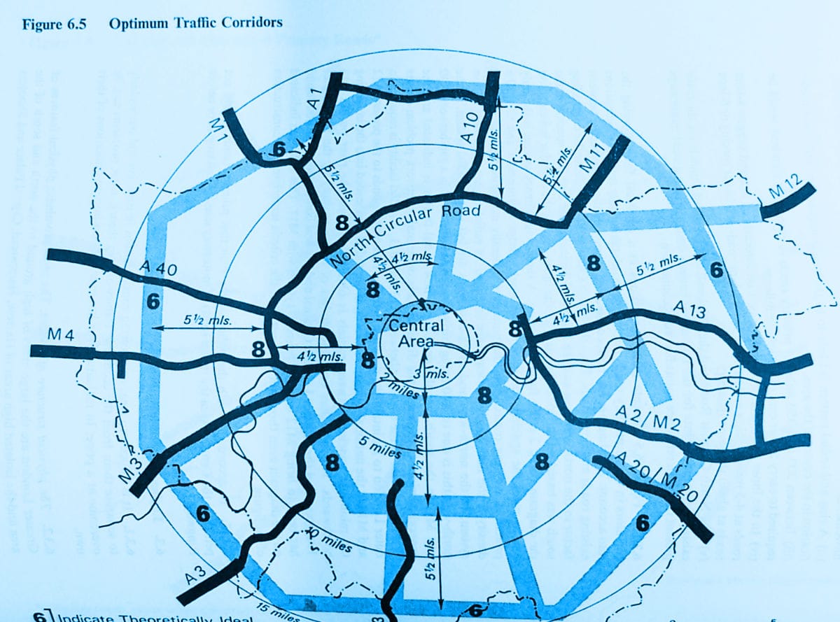 The issue was that the GLC approached planning as a science. They had worked out how dense their web of motorways needed to be to serve the whole metropolis evenly: between Ringways 1 and 2 the radial routes needed to be about four miles apart, but the lack of a motorway approaching London between the A20 and M23 meant a gap of about eight miles.