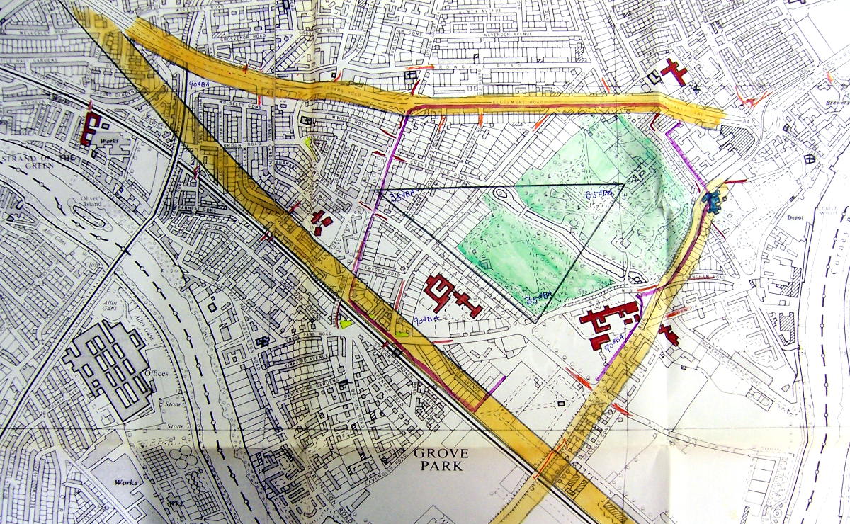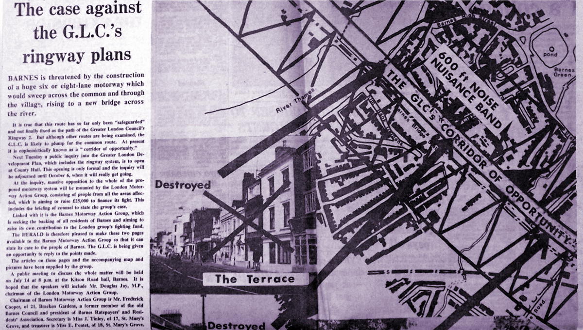 - Barnes Motorway Action Group message and map are taken from the Putney and Roehampton Gazette, 2 July 1970.