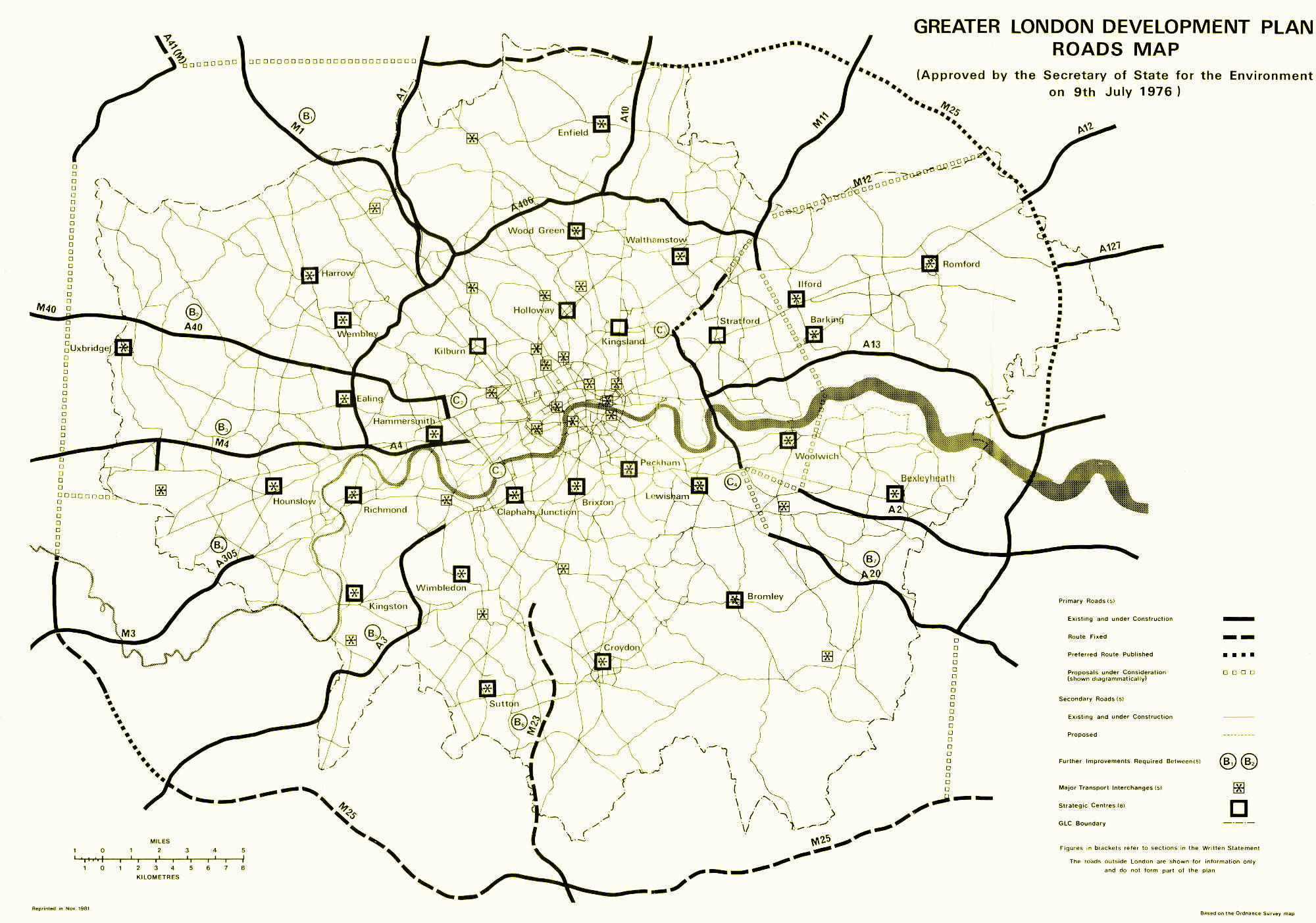 - GLDP published 1976, lack of road proposals: "Greater London Development Plan: Approved by the Secretary of State for the Environment on 9 July 1976". (1976). London: Greater London Council.