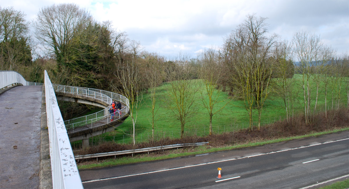 Most of the route was unobjectionable, but the Tring Bypass included one striking choice, which was to pass through Tring Park, severing Tring Park Mansion from its extensive landscaped grounds. In 1968, the Royal Fine Art Commission inspected this brutal alignment, and approved it, remarking that it meant "the formal avenue and the clumps of trees could be preserved to the greatest possible effect". The bypass was built. Today the formal avenue of fine and ancient oak trees ends at the spiral ramp of a concrete footbridge, with no view of the mansion.