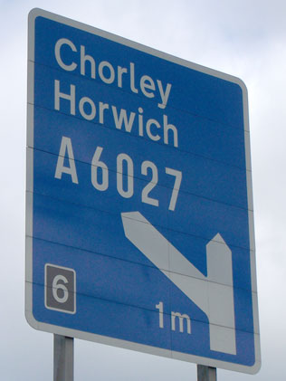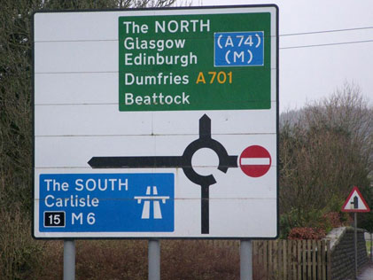 - Picture of sign on the A74(M) showing "M6" courtesy of John Mullen.